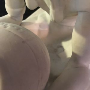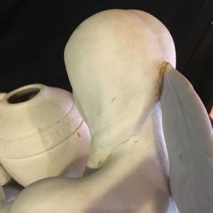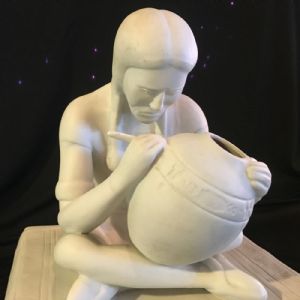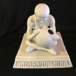 Shenango China Native Indian Potter Sculpture 1940s-1950sVintage Shenango China advertising souvenir Native American potter sculptural figure made of unglazed porcelain. Crafted at Shenango China Inc. in Newcastle, Pa., circa 1940s-1950s. The figure measures appx. 10-1/2" high x 11" wide x 12" deep at the base. The piece is in good to very good condition with minor surface wear. There are a few manufacturer's flaws, such as cracked clay during firing, in the lap area and along the neckline. There is a surface chip on the lower right front corner, near the "A" in "CHINA". The feather has been glued by a previous owner, as found. Please see photos for image details. This item is available for pick up in San Antonio, Florida. Please contact us via email at sanantoniofloridaantiques@gmail.com and provide your mailing zip code for shipping cost calculations. This item is heavy, appx. 15 pounds, so shipping costs will be substantial. We ship via insured USPS Priority Mail. We do not offer returns. No international shipping on this item. We appreciate your interest! Please check out our other items in our online store at AntiqueTrail.com/Store $1,250.00